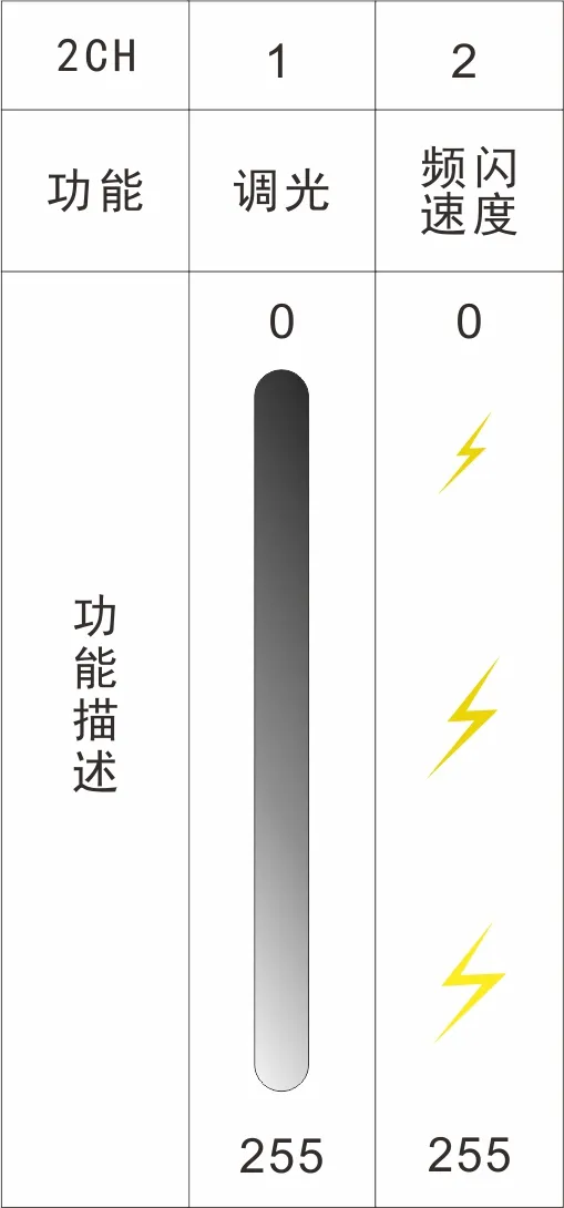 通道模式:1种DMX通道(2个国际标准DMX512通道)